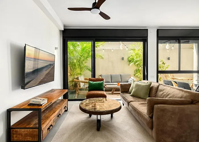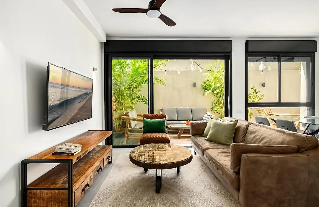 Eclectic Vision By Tlv2Rent Apartment boasts views of the garden and is located only a 13-minute walk from Meir Park. This apartment also offers a private parking lot on site.